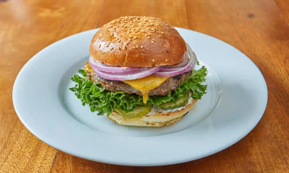 beef patty, portuguese linguisa sausage, muenster cheese, egg any style, spinach, fried onion, and thousand island spread on a brioche bun, served with house potatoes